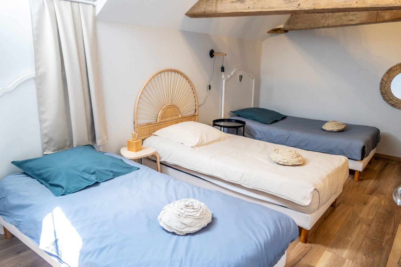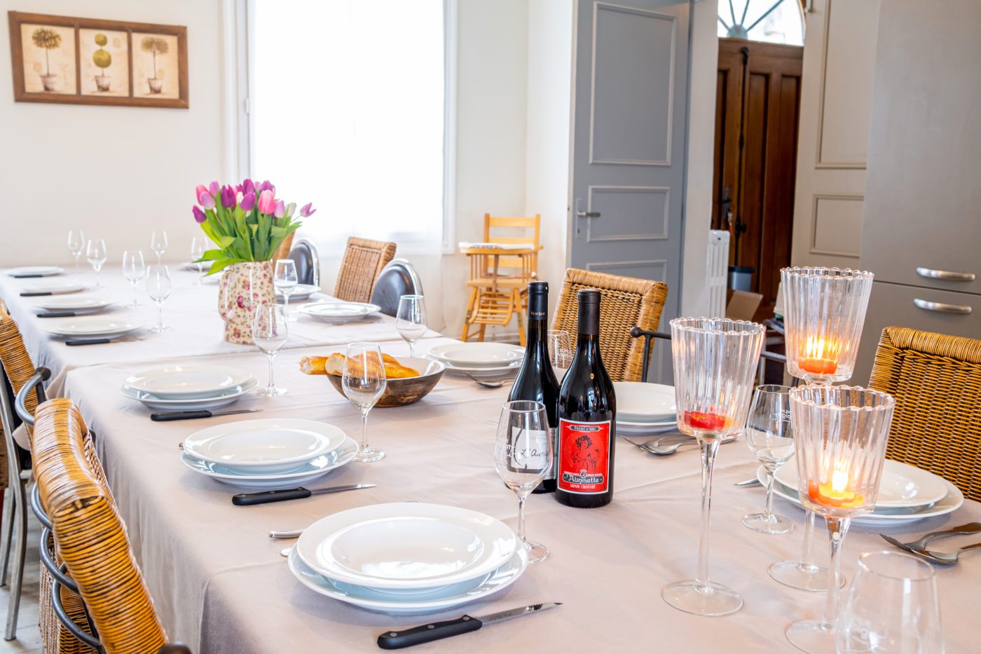 Ici, au cœur de notre domaine viticole, nous vous proposons un gîte de 250m² pouvant accueillir jusqu’à 20 personnes et composé de 6 chambres et de 4 salles d’eau, d’une grande cuisine-salle à manger équipée et d’un salon chaleureux.